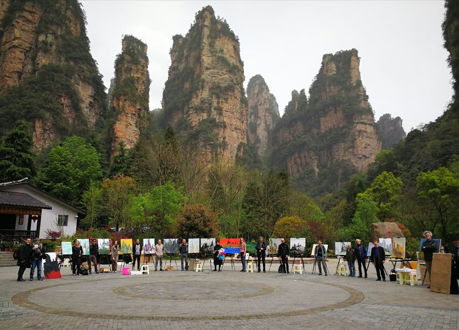 4月6日,21位来自欧洲文艺复兴发源地的意大利佛罗伦萨美术学院、罗马美术学院、米兰布拉雷美术学院的艺术家,来到位于张家界市武陵源区的张家界联合国教科文组织世界地质公园地质博物馆前,以张家界地貌风光为蓝本进行艺术创作。