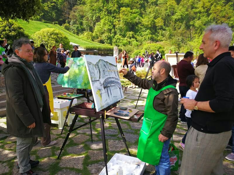 “我绘这座桥,有两层含义:一是景区联通两岸的桥,可以让两岸的人自由往来;二是连接中国和意大利的‘桥’,马可·波罗让意大利知道中国,‘桥’可以让两国人民紧密联系,加深友谊和心灵沟通。”得罗·卡波格罗索这样解释他绘画的原因。“通过这次采风,我特别希望能多来这神奇美丽的地方绘画。”