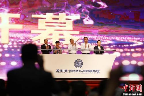 7月13日,由天津市人民政府、中国国务院侨务办公室联合主办的2018中国·天津华侨华人创业发展洽谈会暨世界侨商项目与商品博览会在天津梅江会展中心启幕。中新社记者 佟郁 摄中新社天津7月13日电 (周乾宪)“2018中国·天津华侨华人创业发展洽谈会”13日在天津开幕。中央统战部副部长、国务院侨办主任许又声在致辞中表示,希望广大海外侨胞抓住机遇、发挥优势、深化合作,更广泛、更深入、更精准地参与到中国新一轮改革开放浪潮中来。