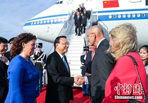 李克强抵达阿姆斯特丹对荷兰进行正式访问