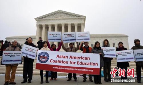 资料图:美国亚裔团体同日在最高法门口举行集会示威。中新社记者 张蔚然 摄中新网10月15日电(张艾京) 当地时间15日,备受瞩目的“哈佛招生歧视亚裔”案将在波士顿联邦地区法院开审,美国亚裔维权迎来重要一役。虽然哈佛大学一再否认指控,但这起诉讼案却获得了近百亚裔组织以及美国司法部的支持。
