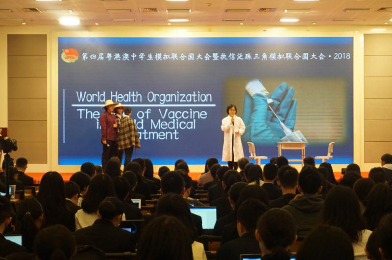 图:粤港澳中学生参加模拟联合国大会/大公报记者敖敏辉摄【大公报讯】记者敖敏辉广州报道:8日,2018年第四届粤港澳中学生模拟联合国大会暨执信泛珠三角模拟联合国大会在广州开幕,来自三地43所参赛学校学生,真实还原联合国大会场景,现场模拟各国外交官,就儿童疫苗、武装衝突中儿童权益保护等议题展开谈判、辩论、起草和表决建议草案等活动。
