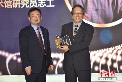 1月4日,由中国新闻社主办的“2018‘侨鑫杯’全球华侨华人年度评选”颁奖典礼在北京举行,“2018全球华侨华人年度人物”在现场揭晓。图为清华大学华商研究院院长龙登高为美国佛利尔赛克勒美术馆研究员志工王纯杰颁奖。中新网记者 翟璐 摄中新社北京1月9日电 题:两度送国宝“回家” 王纯杰:我只是做了该做的事