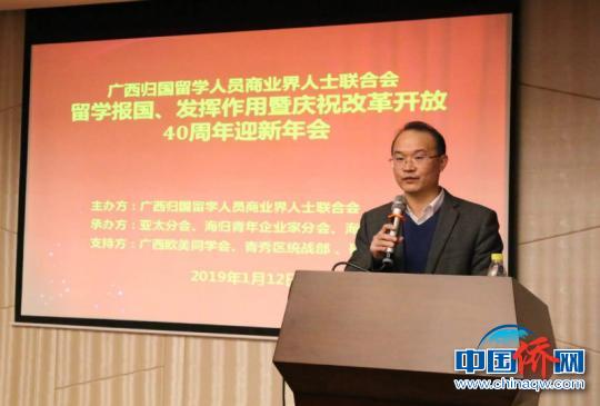 广西归国留学人员商业界人士联合会当天召开二届四次理事大会,联合会常务副会长江浩平在工作报告中介绍,2018年以来,联合会弘扬留学报国使命,加强党建工作,先后推动全国首个海归妇联在广西成立,引领带动海归女性创业;在广西北部湾股权交易所推动设立全国规模最大的“海创板”,首批111家会员企业集体登陆,有力促进海归企业提高创新能力。