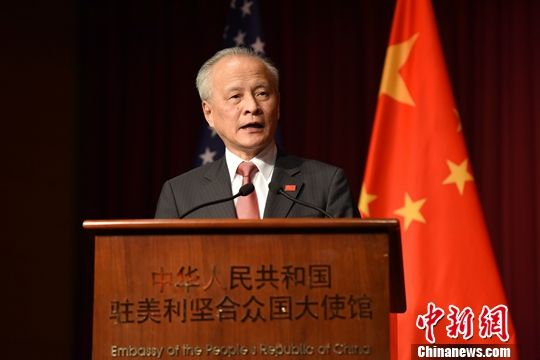 中国驻美大使馆当天举行2019年春节侨学界招待会。崔天凯在致辞时作上述表示。
