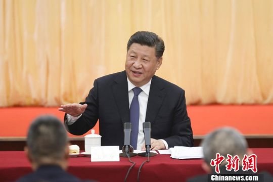 3月4日下午,中共中央总书记、国家主席、中央军委主席习近平看望参加全国政协十三届二次会议的文化艺术界、社会科学界委员,并参加联组会,听取意见和建议。中新社记者 盛佳鹏 摄(两会速递)习近平看望参加政协会议的文艺界社科界委员