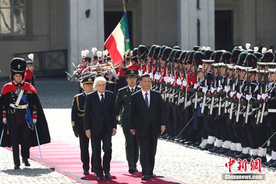当地时间3月22日,中国国家主席习近平在罗马同意大利总统马塔雷拉举行会谈。会谈前,马塔雷拉总统在总统府广场为习近平举行隆重欢迎仪式。 中新社记者 盛佳鹏 摄中新社北京3月24日电 题:习近平再访意大利:为中意合作廓清路径、擘画蓝图