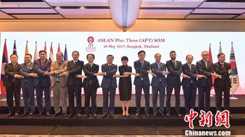 5月30日,中国驻东盟大使黄溪连代表中方高官出席在泰国曼谷举行的东盟与中日韩(10+3)高官会,就中美经贸摩擦问题阐述了中方立场。图为与会代表合影。中新社发 泰外交部 供图中新社曼谷5月30日电 (记者 王国安)中国驻东盟大使黄溪连代表中方高官30日出席在泰国曼谷举行的东盟与中日韩(10+3)高官会,就中美经贸摩擦问题阐述了中方立场。与会各方代表呼吁坚持多边主义和自由贸易,反对单边主义和保护主义。