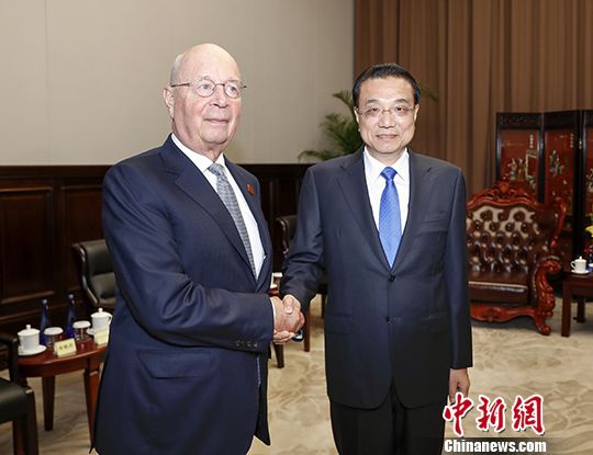 7月1日下午,中国国务院总理李克强在大连会见世界经济论坛主席施瓦布。中新社记者 刘震 摄中新社大连7月1日电 (记者 张子扬)中国国务院总理李克强7月1日下午在大连会见世界经济论坛主席施瓦布。