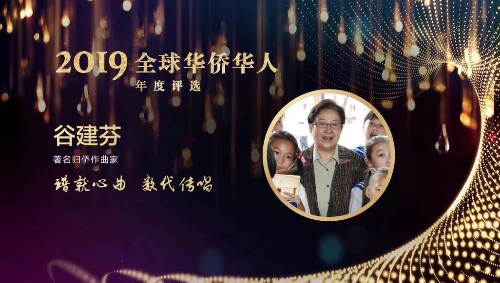 1月8日,“2019全球华侨华人年度评选”颁奖典礼在北京钓鱼台国宾馆举行。归侨作曲家谷建芬获“2019全球华侨华人年度人物”。出生于日本大阪的谷建芬6岁时随家人回到中国。她创作了《今天是你的生日》《年轻的朋友来相会》《绿叶对根的情意》《滚滚长江东逝水》等一大批经典作品。70岁时,谷建芬开始关注孩子的音乐教育,她将一批古诗词谱成歌,在孩子们中传唱。