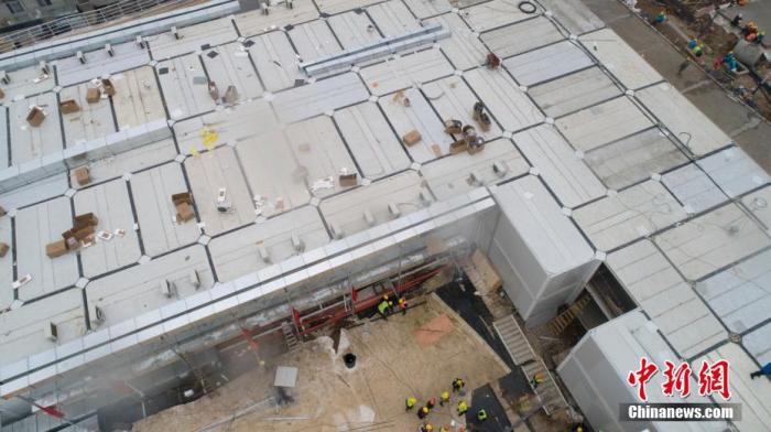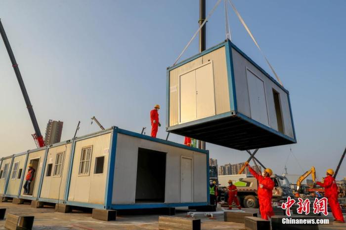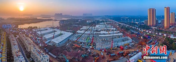 1月31日,火神山医院施工现场。 中新社发 王腾 摄(抗击新型肺炎)中国如何十天建成火神山医院?