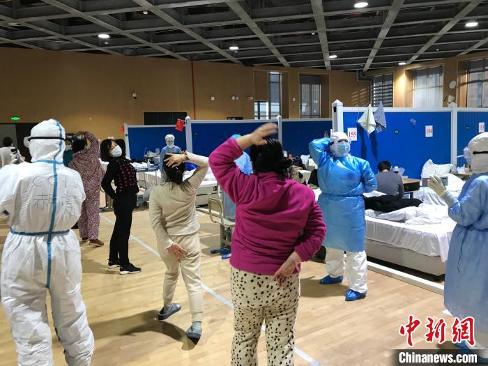 病人集体在方舱医院学习易筋经。 受访者供图中新网南昌2月15日题:方舱医院抗“疫”日记:用爱给这座城市多一点温暖与信心