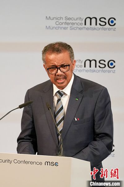 当地时间2月15日,世界卫生组织(WHO)总干事谭德塞在德国慕尼黑举行的第56届慕尼黑安全会议上表示,中国采取的措施为全球应对新冠肺炎疫情赢得了时间。他同时表示,世卫组织专家团队已抵达中国,正与中国同行们紧密协作,以了解疫情状况、为全球下一步应对提供建议。 中新社记者 彭大伟 摄(抗击新冠肺炎)世卫总干事:中国为全球应对疫情赢得时间