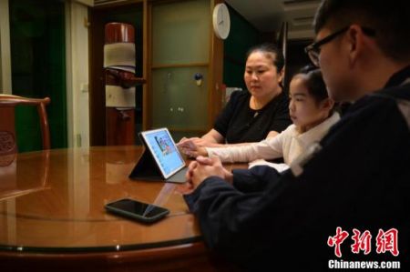 3月2日晚,广州市增城区荔江小学学生与家人在家观看家长会直播。受新冠肺炎疫情影响,广州市中小学校3月2日起开展线上教育,该校为了更好地与广州市线上课堂学习同步,科学统筹家长时间与督促孩子线上学习而举办了线上直播家长会。 中新社记者 姬东 摄