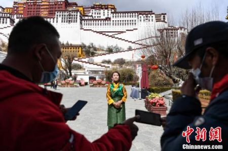 3月1日,世界文化遗产布达拉宫首次开启直播,带领世界各地网友“云春游”,让人们足不出户就能感受布达拉宫的魅力。图为布达拉宫管理处工作人员正在做直播前的准备。 中新社记者 何蓬磊 摄