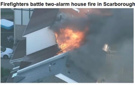 加拿大多伦多士嘉堡华人区民宅近日发生大火,一所联排别墅屋顶被烧穿,火焰和浓烟滚滚升腾。幸运的是,火灾未造成人员伤亡。但遭遇疫情又房屋受损,肯定会影响房主心情。