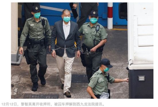 法网恢恢,疏而不漏。12日,被控欺诈正还押候审的黎智英,被香港警方加控违反香港国安法“勾结外国或境外势力危害国家安全罪”,在西九龙法院提堂。铁链缠身的黎智英不见了昔日祸国乱港的嚣张气焰,等待他的必将是法律的严惩。