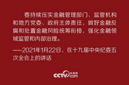 “要持续压实金融管理部门、监管机构和地方党委、政府主体责任,做好金融反腐和处置金融风险统筹衔接,强化金融领域监管和内部治理。”