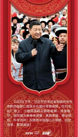 中华民族传统节日农历牛年春节即将到来之际,习近平总书记来到贵州,看望慰问各族干部群众,向全国各族人民、向港澳台同胞和海外侨胞致以美好的新春祝福。总书记一路走来,深入农村、社区、超市等考察调研,给各族干部群众送去党中央的关怀和慰问,并对贵州的今后发展提出殷殷瞩望。