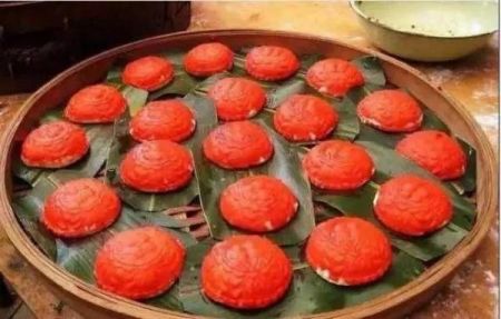 这个东西叫“红龟粿”,又称“红龟糕”,是一种传统节庆祭祀食品,流行于福建、台湾乃至广东一带,在东南亚华人社会中也特别流行。