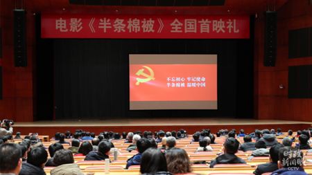 2020年12月4日,电影《半条棉被》全国首映礼在中央党校(国家行政学院)大礼堂举行。习近平总书记曾在纪念红军长征胜利80周年大会上专门讲过“半条被子”的故事,去年9月,总书记特意来到湖南沙洲瑶族村“半条被子的温暖”专题陈列馆考察。(来源于中共中央党校官网)
