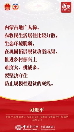 中共中央总书记、国家主席、中央军委主席习近平5日下午参加他所在的十三届全国人大四次会议内蒙古代表团审议。习近平强调——