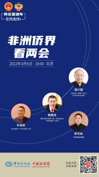 中非开启外交关系60多年来,双方结下了牢不可破的兄弟情谊。在非洲的华侨华人和中资企业,也是推动中非合作和友好交往的一个重要力量。在中国全国两会召开之际,非洲对于这项中国乃至全世界都高度关注的政治活动有何期待,在非的华侨华人又有哪些新的关注点,中新社、中新网两会直通车·全球连线看两会邀请三位在非洲不同地区的华侨华人朋友,分享来自非洲的声音。