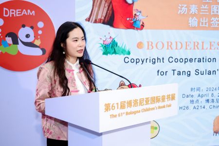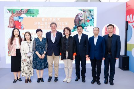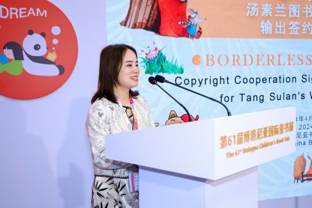当地时间4月8日下午,湖南少年儿童出版社在第六十一届意大利博洛尼亚童书展中国区展台举办“童心无国界——汤素兰作品意大利文版输出签约及发布会”。