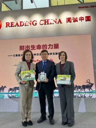 2026年4月13日上午,第63届意大利博洛尼亚国际童书展首日,江苏凤凰少年儿童出版社(以下简称“苏少社”)在中国馆举办了“刻出生命的力量——《麋鹿大王》多语种交流暨僧伽罗文版签约会”。意大利世界中国出版社社长胡兰波、总编辑莱雅,意大利阿科玛出版社社长西尔维亚,苏少社社长谷建亚率编辑和版权团队,以及海内外出版同行、媒体代表出席了活动。英国新经典出版社顾问托尼·卡普林,知名翻译家汪海岚、斯里兰卡悦读服务有限公司社长普拉迪·甘姆奇、《麋鹿大王》作者通过视频参加活动。活动由苏少社《东方娃娃》期刊有限公司总编辑余丽琼主持。本次活动以《麋鹿大王》的版权输出为契机,聚焦中国生态文明建设的艺术表达,邀请中外出版、创作界专家代表共同探讨生态主题童书创作以及国际传播路径。