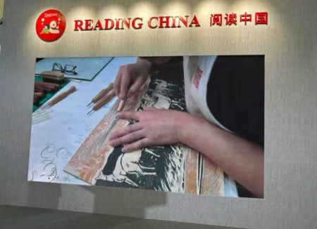 活动开始,一段《麋鹿大王》的创作花絮视频展示了该书的创作过程和艺术技法,现场的中外观众被画家李小光的木刻版画创作过程深深震撼。